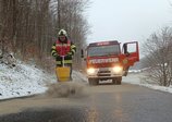 Geplatzter Hydraulikschlauch an einem Schneeräumfahrzeug verursachte 3km lange Ölspur.
