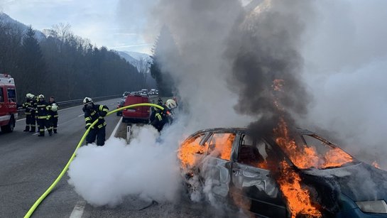 Bereits bei der Anfahrt war eine hohe Rauchsäule zu sehen. Daher wurde noch während der Anfahrt die FF Grünburg nachalarmiert, um ausreichend Löschwasser zur Verfügung zu haben. Unter schweren Atemschutz wurde begonnen, den in Vollbrand stehenden PKW zu Löschen. Mit einem C-Rohr konnte der Brand rasch niedergeschlagen und schlussendlich gelöscht werden.