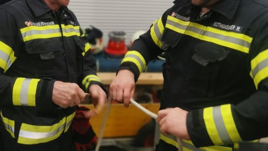 Bei der zweiten Übung am Montagabend ging es um die richtige Absturzsicherung im Feuerwehrdienst, um bestmöglich für die eigene Sicherheit der Einsatzkräfte, bei Personenrettungen oder Sturmschäden auf Dächern, zu sorgen. Nach einer kurzen Theorieeinheit im Lehrsaal wurde die praktische Anwendung gelernt und gefestigt. Als Abschluss der Übung wurde noch eine Personenrettung nach Absturz über steiles Gelände, als einsatznahes Szenario geübt.